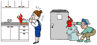 喫煙室や給湯室など火を扱う場所や、燃えやすいもののある場所に設置します。